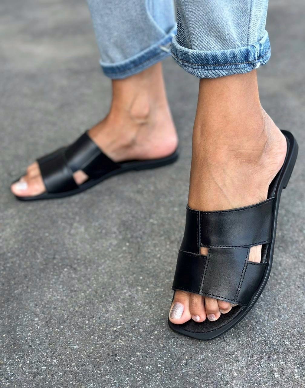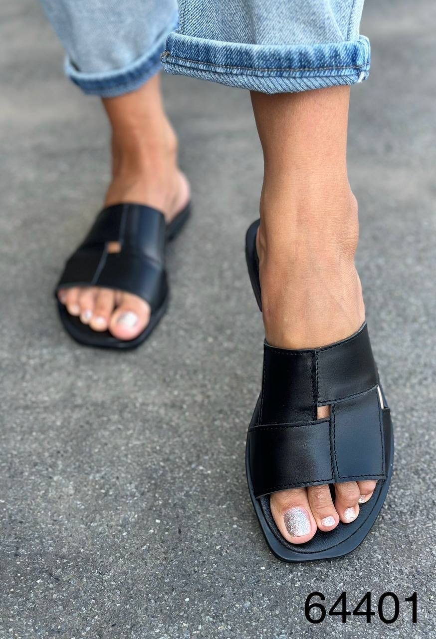 Шкіряні шльопки з мінімалістичним дизайном. Мяка устілка забезпечує комфорт при ходьбі, а лаконічна форма легко поєднується з повсякденним гардеробом.