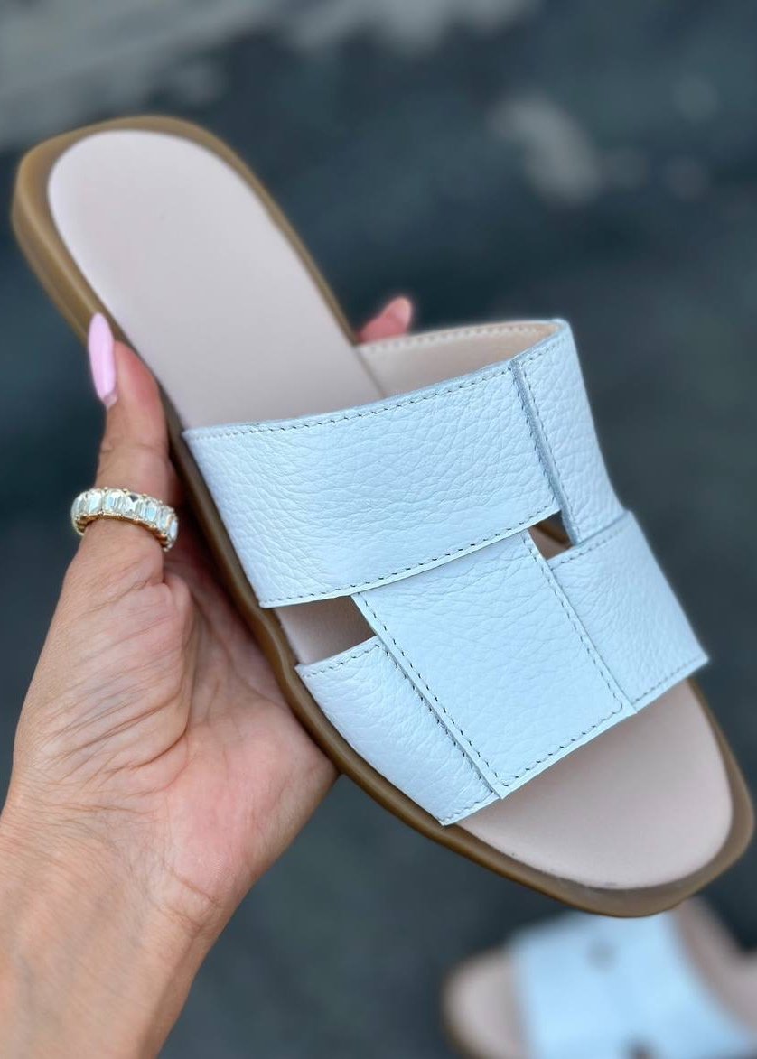 Шкіряні шльопки з мінімалістичним дизайном. Мяка устілка забезпечує комфорт при ходьбі, а лаконічна форма легко поєднується з повсякденним гардеробом.