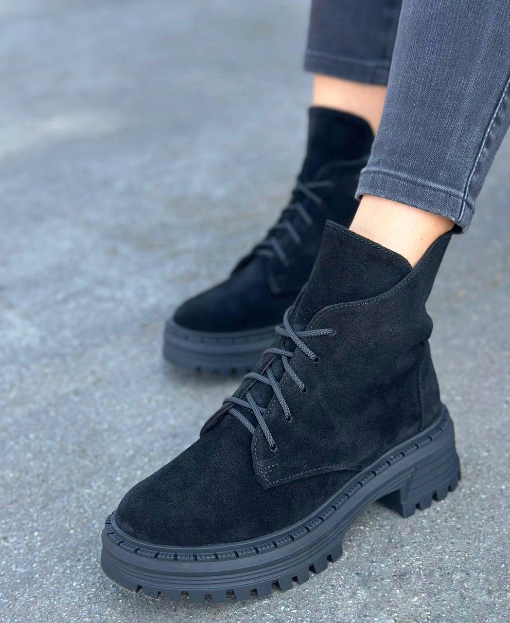 Базові черевики, які легко поєднуються з будь-яким гардеробом. Натуральна шкіра, масивна підошва та комфортна посадка — стильна пара на кожен день.